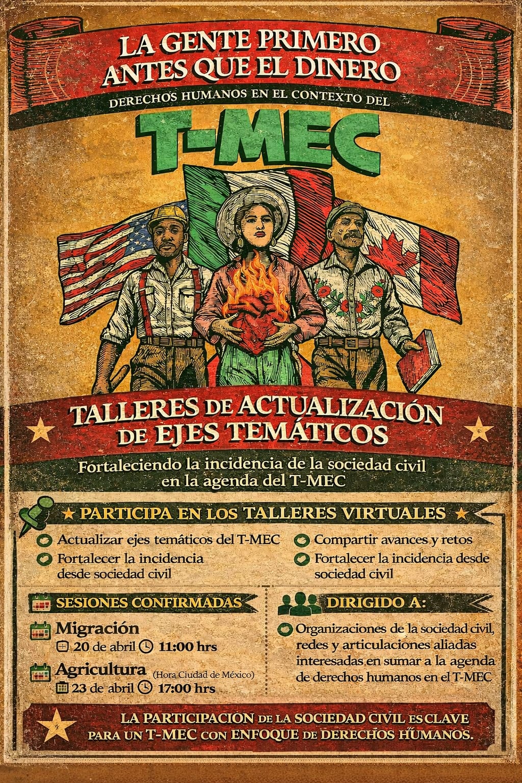 Les invitamos al taller virtual del eje de Agricultura en el marco del T-MEC, un espacio para dar continuidad y seguir construyendo propuestas colectivas frente al proceso de revisión del tratado.